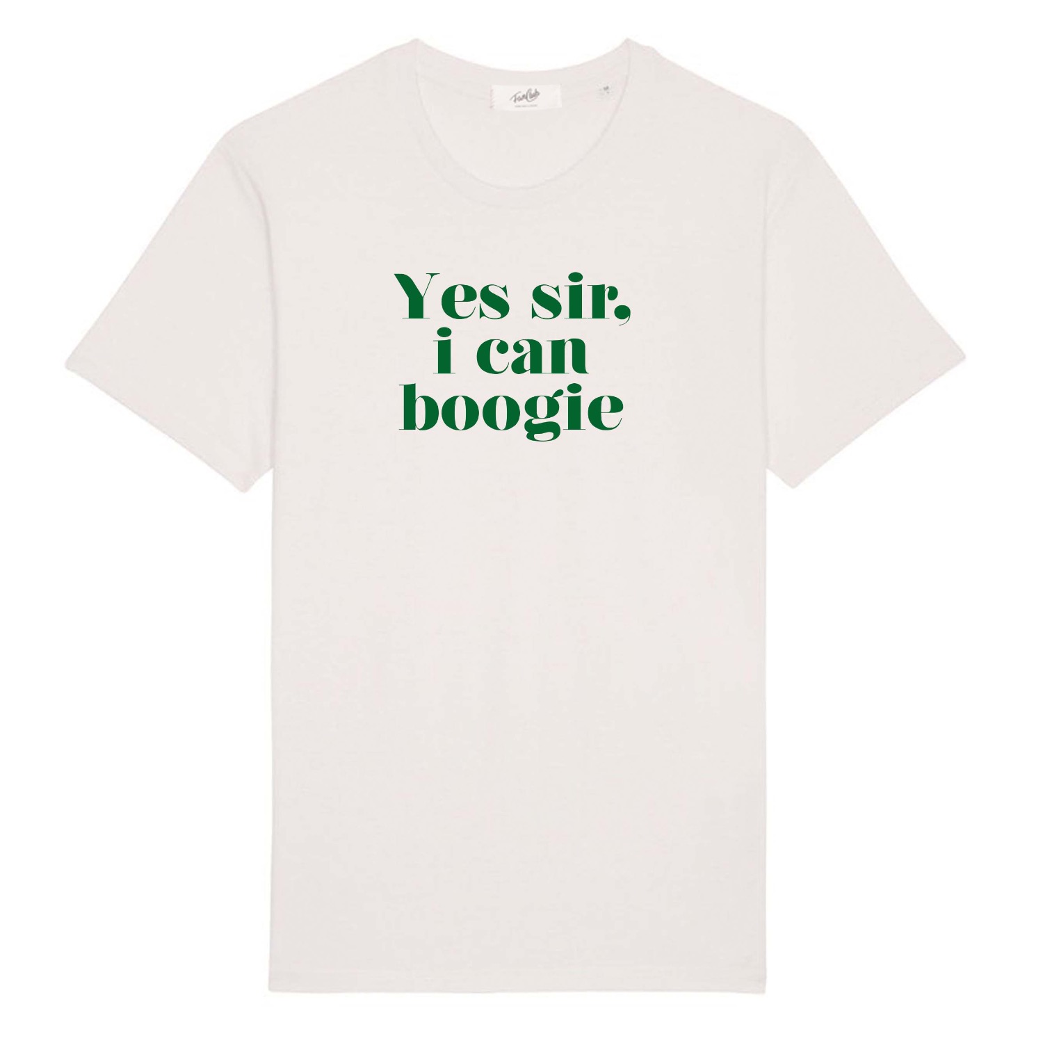 Yes Sir I Can Boogie Oversized Retro Slogan TShirt Vintage White